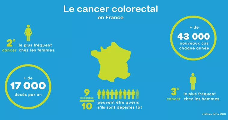 Le cancer colorectal touche 43 000 personnes (environ 23 000 hommes et 20 000 femmes) en France chaque année et il est responsable de plus de 17 000 décès par an. Mars bleu est le mois dédié au dépistage du cancer colorectal.